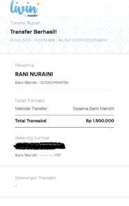 Bank Mandiri, no.rekening: 1570009948788, atas nama: Rani Nuraini