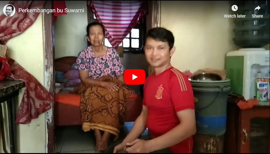 25 Oktober 2019, kondisi bu Suwarni semakin memburuk, beliau sudah tidak bisa berjalan karena kakinya terasa lemas bahkan membengkok tidak bisa menapak. Sehingga kakinya tidak mampu menahan berat badan. Bu Suwarni harus berobat ke dokter spesialis tulang atau rumah sakit tapi terkendala masalah biaya. Ayo kita bantu bu Suwarni. Klik video dibawah ini tentang perkembangan bu Suwarni: